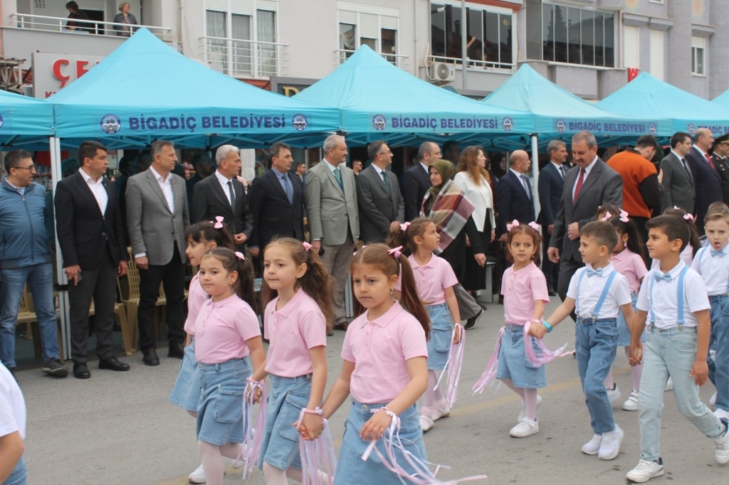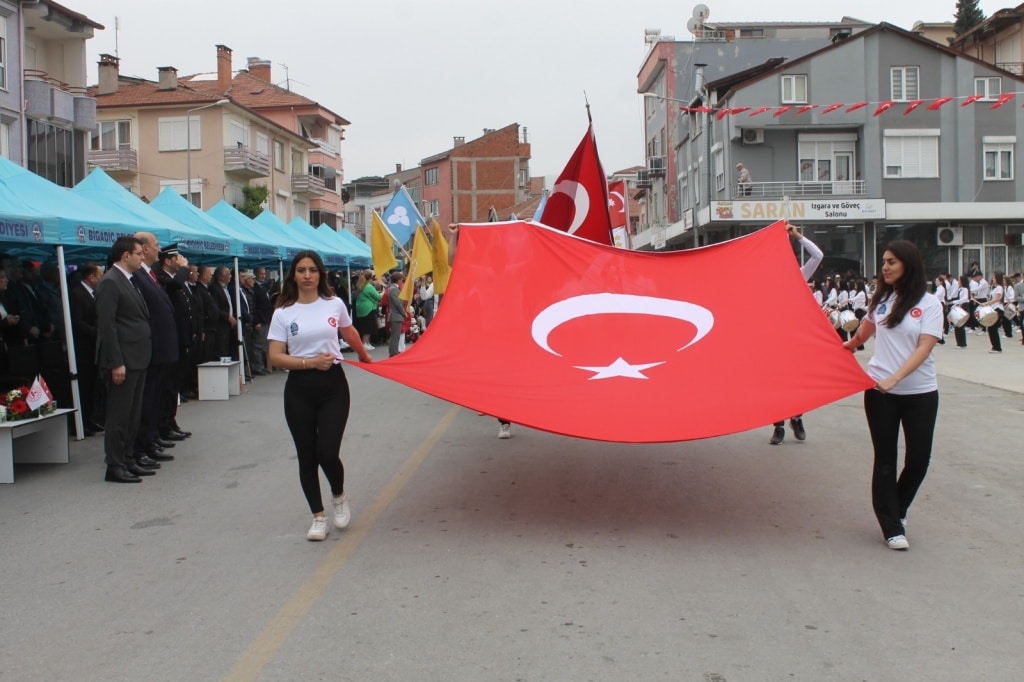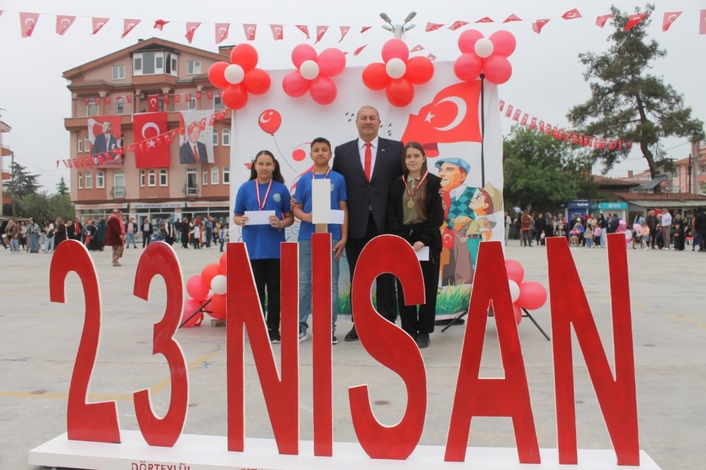 23 Nisan Ulusal Egemenlik ve Çocuk Bayramı ilçemizde coşkuyla kutlandı. İlçe Milli Eğitim Müdürümüz Sayın Şinasi ÖZULUS'un Atatürk Anıtı'na çelenk koymasıyla başlayan tören, saygı duruşunda bulunulması ve İstiklal Marşı'nın okunmasının ardından sona erdi. Program Açık Pazaryerinde gerçekleştirilen kutlama etkinlikleri ile devam etti. Okulumuz öğretmen ve öğrencilerinin hazırladığı 23 Nisan Ulusal Egemenlik ve Çocuk Bayramı törenine İlçe Kaymakamımız Sayın Mehmet Halis AYDIN, İlçe Belediye Başkanımız Sayın Mustafa GÖKSEL, İlçe Emniyet Müdürü Sayın Oğuzhan AKYOL, İlçe Jandarma Komutanı Sayın Üsteğmen Ali AKYÜZ, İlçe Milli Eğitim Müdürümüz Sayın Şinasi ÖZULUS, İlçe Milli Eğitim Şube Müdürümüz Talip KARPINAR, daire müdürleri, STK temsilcileri, okul müdürleri, öğrenciler, gaziler ve vatandaşlar katıldı. Törenin ardından 23 Nisan Ulusal Egemenlik ve Çocuk Bayramı kapsamında düzenlenen şiir ve resim yarışmalarında dereceye giren öğrencilerin ödülleri takdim edildi. Tören bando eşliğinde öğrencilerin yürüyüşü ile sona erdi.