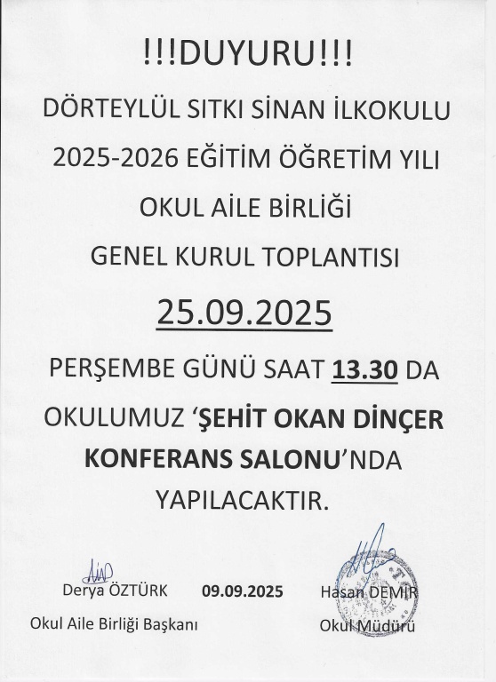 DÖRTEYLÜL SITKI SİNAN İLKOKULU 2024-2025 EĞİTİM ÖĞRETİM YILI